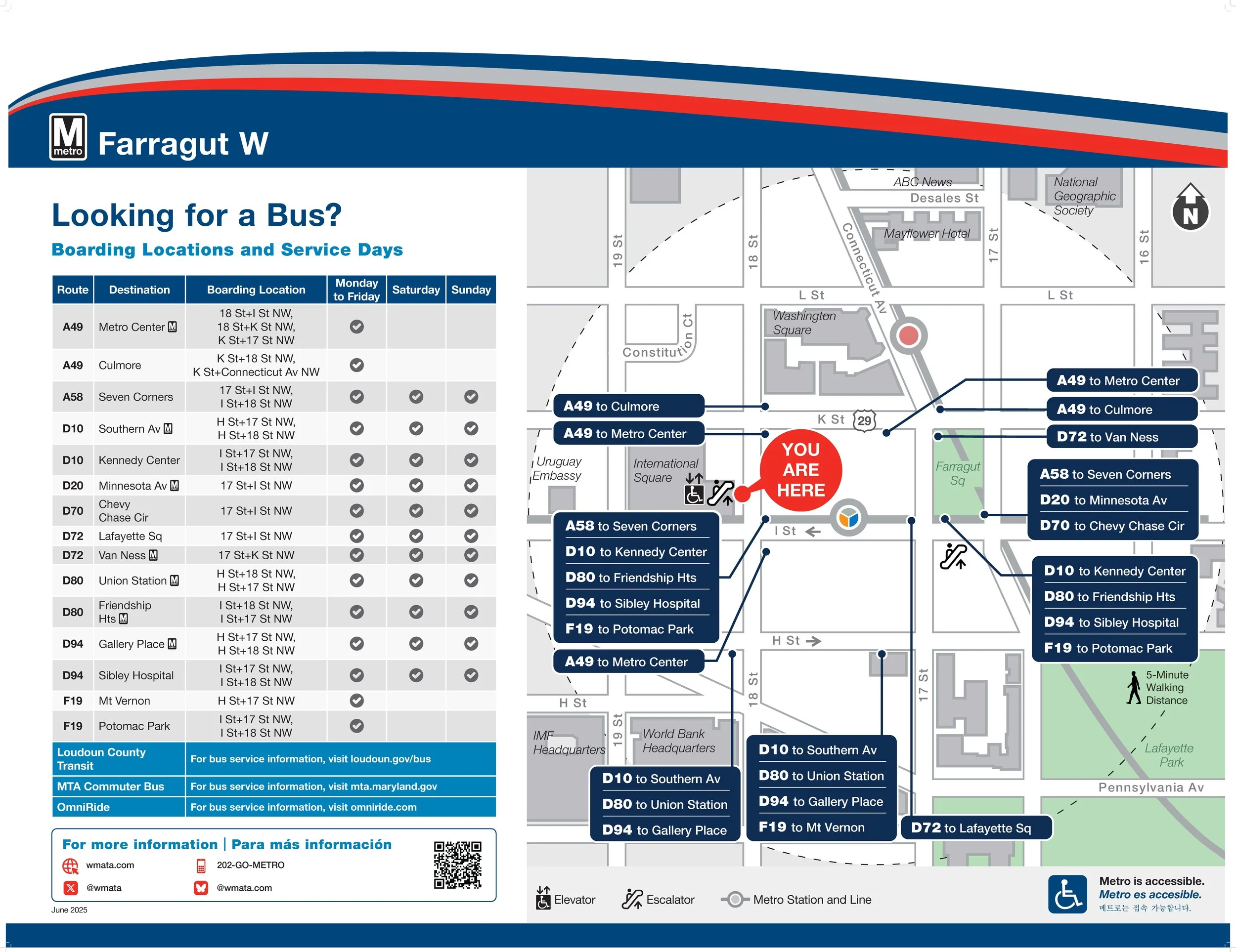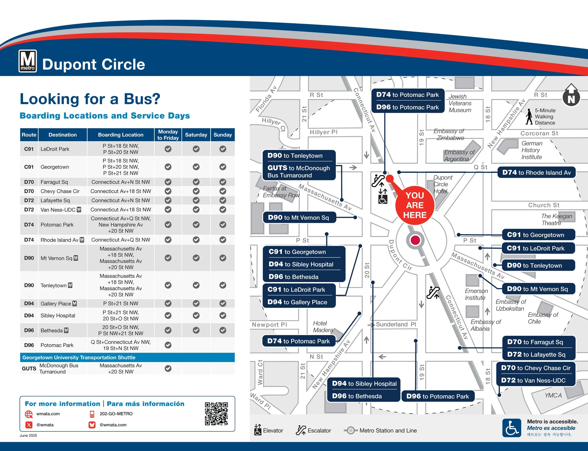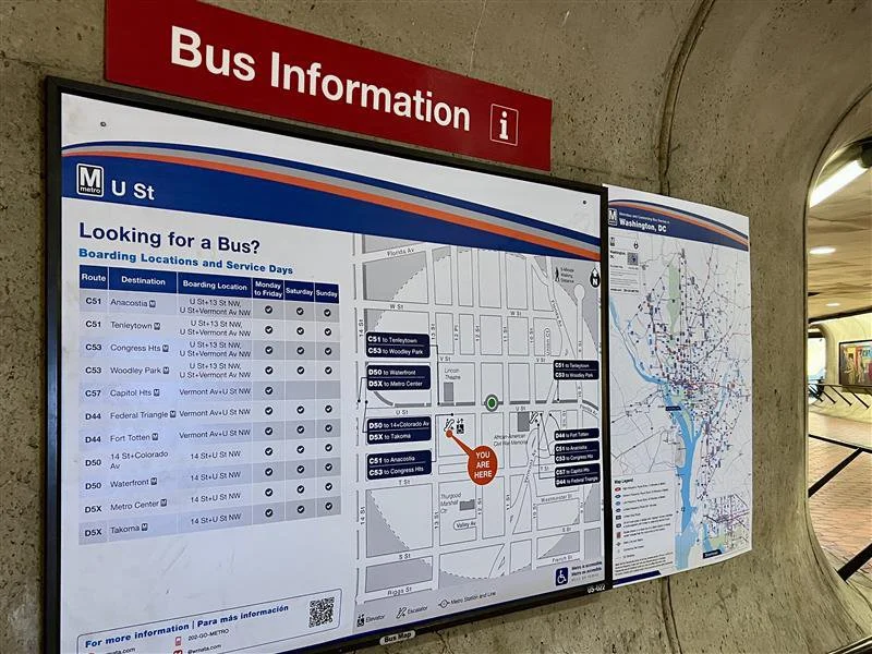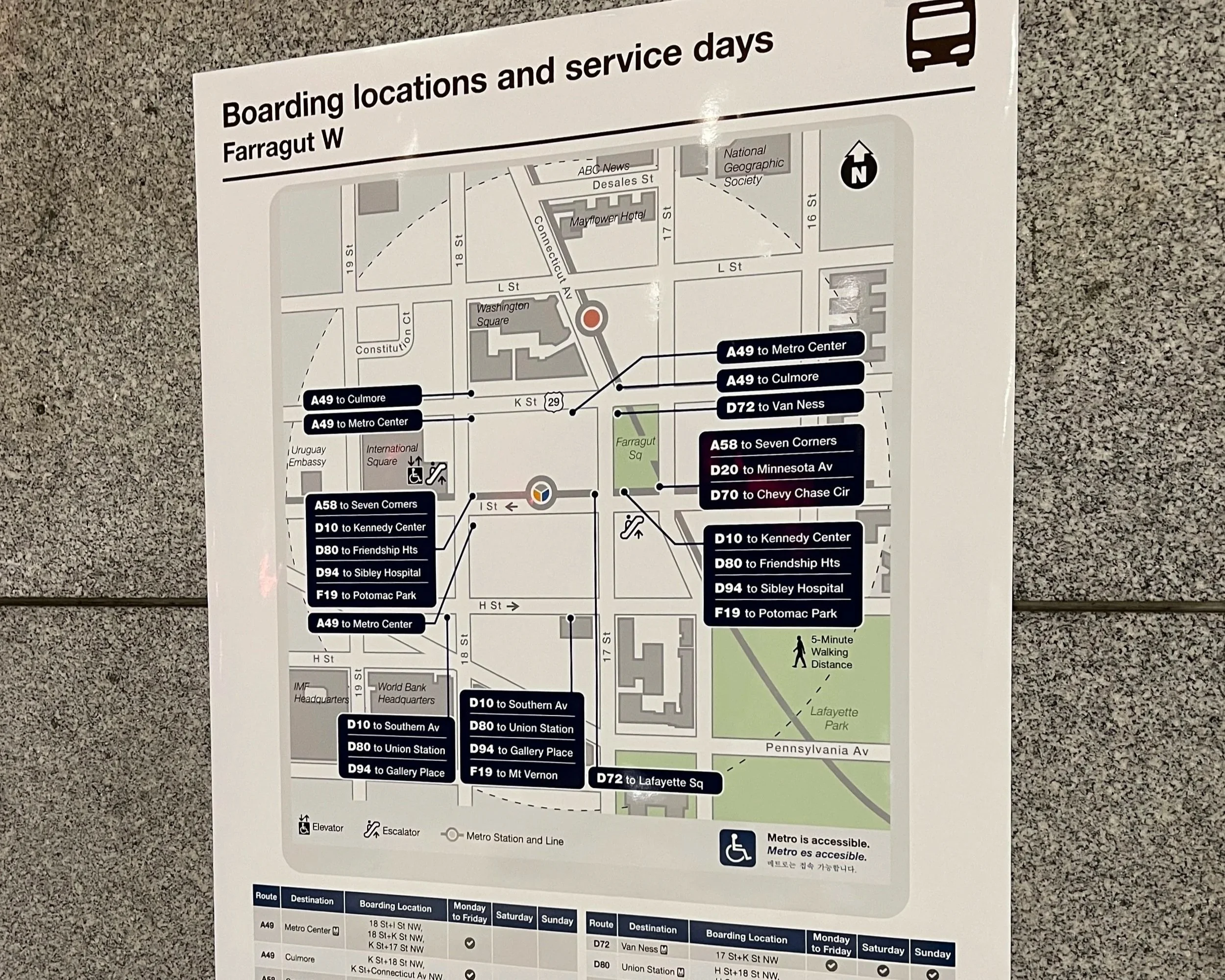 Designed 33 metro bus maps for the Washington Metropolitan Area Transit Authority (WMATA) that are displayed at Metro bus stops throughout Washington, D.C. and Northern Virginia. The maps list the route, destination, boarding location, and service days. Our team designed 140 maps in total over a 4 month timespan.